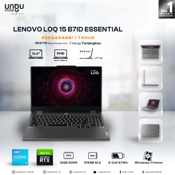 LAPTOP LENOVO GAMING-LOQ-15-B7ID-ESSENTIAL I5 12450HX/12GB/512/RTX3050 6GB/W11+OHS24+M365/15.6"FHD IPS/RGB/WHITE BL/BAREBONE ESSENTIAL/LUNA GREY